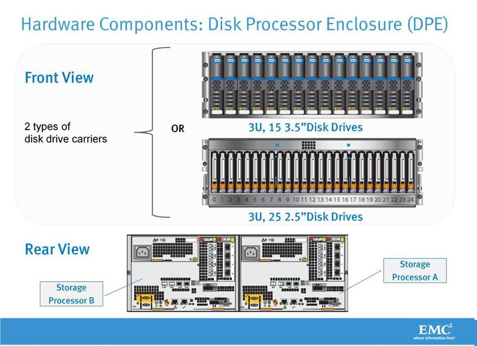 DPE может комплектоваться 3.5 дюймовыми дисками, тогда их влазит 15 штук, и 2.5 дюймовыми - 25 штук. В обоих случаях DPE занимает 3U.